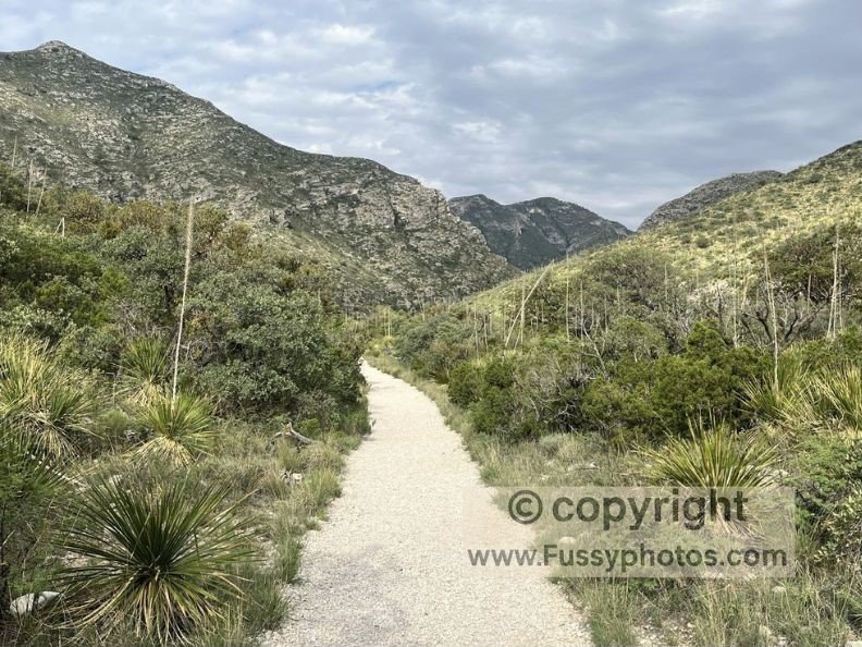 Approaching The Notch, the trail seemed to dead-end into rock. But a narrow snicket—just three meters wide—led us through to a whole new view. Breathless, we paused, snacking and drinking, soaking it all in. Beyond The Notch, the path became clearer, looping around South McKittrick Canyon, a research area closed to visitors but tantalizingly beautiful from above.