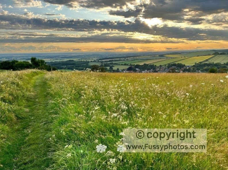 A week later, with long summer evenings on our side, we picked up where we left off, using the two-car system to do a another point-to-point hike . The route climbed over Newbald Wold and past wind turbines before we stopped at The Goodmanham Arms — perfectly timed to shelter from a passing storm. By evening, thunderclouds and low sun made for dramatic photography, the colours blending with the thriving crops.